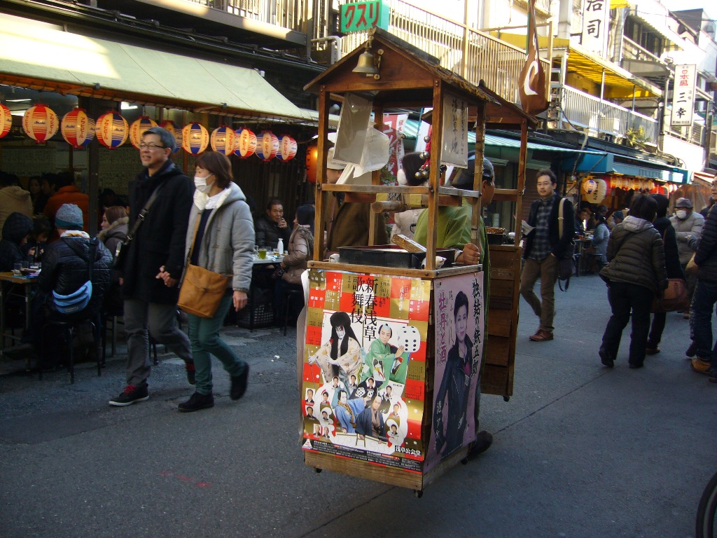 多くの居酒屋さんが軒を連ね、屋台風にビニールシートで風よけをして、暖をとっている店もあります。道路のテーブルに腰をかけての一杯はなんとも言えません。別名「煮込み通り」と言うだけあって、煮込み料理が豊富で人気もあります。
