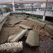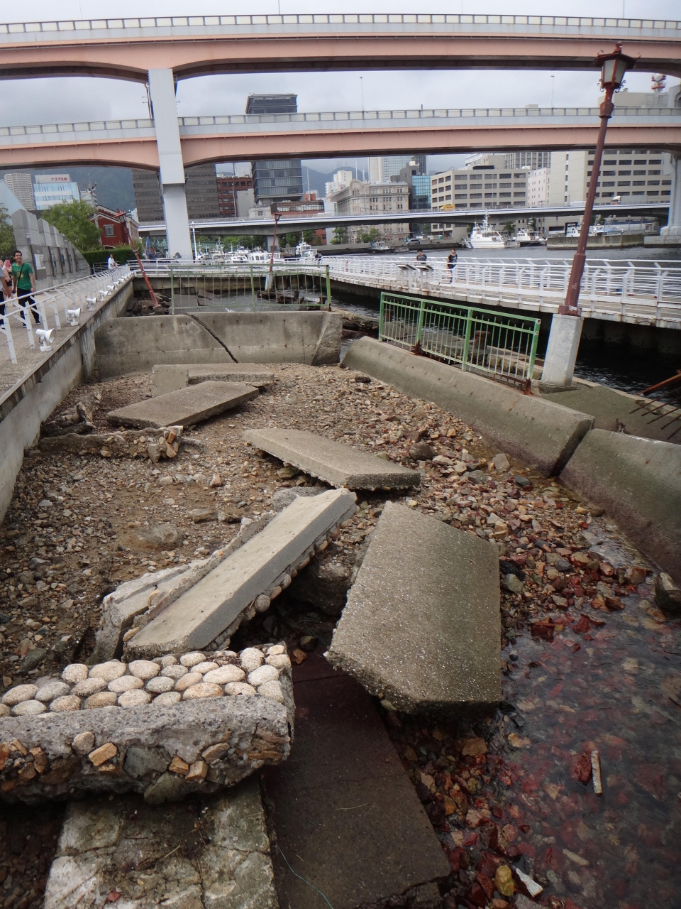 メリケンパーク内にこじんまりとありますが、そこには地震で被害を受けた波止場が一部ですが、そのまま残してありました。