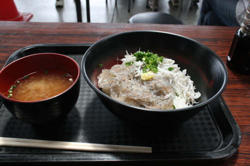 生シラスのみの丼はなく、前に並んでいた家族連れの人が、「前に来た時もなかったのに!!」とぼやいてました。