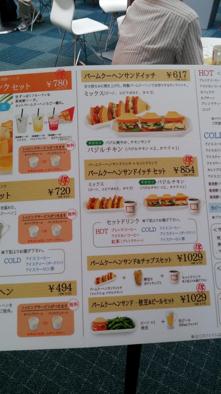 甘さ控えめに焼き上げたバームクーヘンで作った、ビーフ、エビ&アボカド、タマゴなどのサンドイッチなど珍しいものが売っています。
