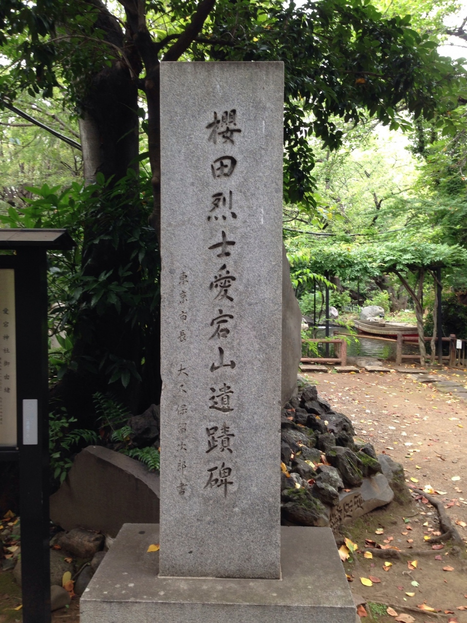 境内には 桜田門外の水戸浪士の石碑も建立されている。