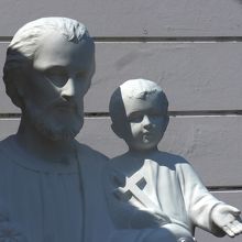 山の上なので,前回に来たときは,行くのをあきらめた教会.まるで山城のように石垣の上に立つ.保護者は聖ヨセフ.その像が私たちを迎える.内陣の素朴さもいい.この山の上まで,石一つ持ってくるにも苦労があったろう.村の人たちの信仰心に頭が下がる.高台なので海がよく見える.