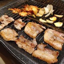サムギョプサルを注文しましたが、厚い肉を切らない状態で提供してくれて、後で切る感じが良かったなぁ。日本だとなかなか厚いタイプに出会えません。