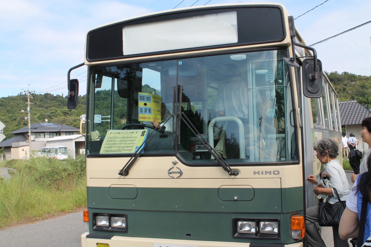 二台来るかと思ったら一台でも大型。停車バス停は、家プロジェクトのあるところのみ。