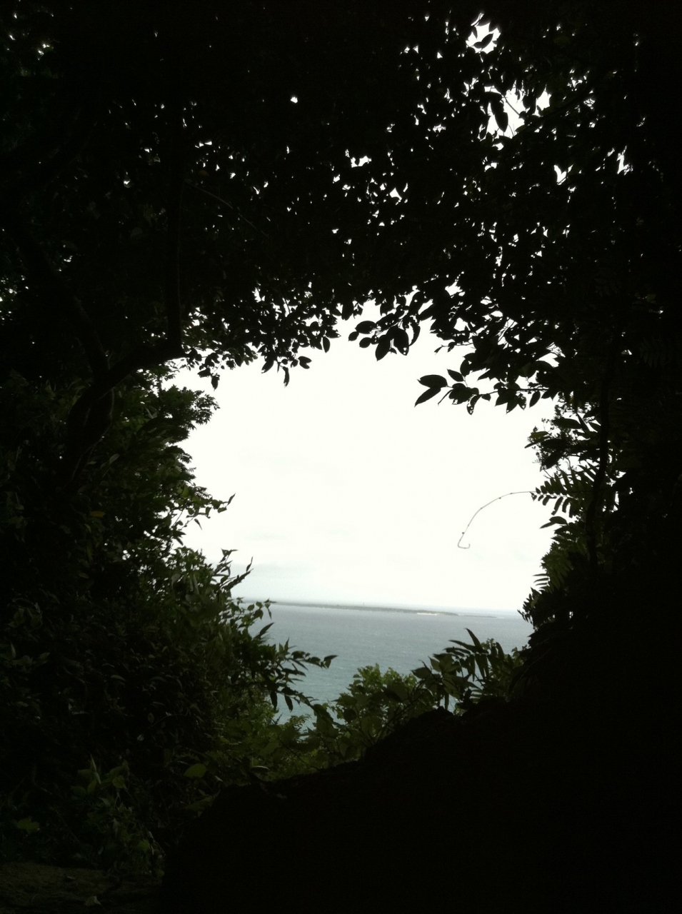 那覇市内から路線バスに乗り向かいました。沖縄の自然も感じられ、とても神聖な雰囲気に息をのまれました。御嶽の内側に入ると、木々の間から久高島が見えるのですが、そこには青い蝶がひらひらと舞い、なんて美しいんだろう!と感動致しました。