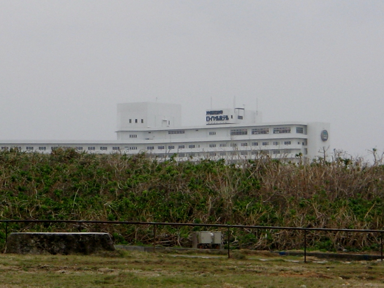 海も遊歩道からは少し遠い感じで岩場の印象が強かったです。私が宿泊したホテル(残波ロイヤルズ)の雄姿?が異様に目立っていました。