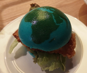 数量限定の青い地球バーガーは、見た目のインパクトは!!だけど、普通のフィッシュバーガーです~(^^)