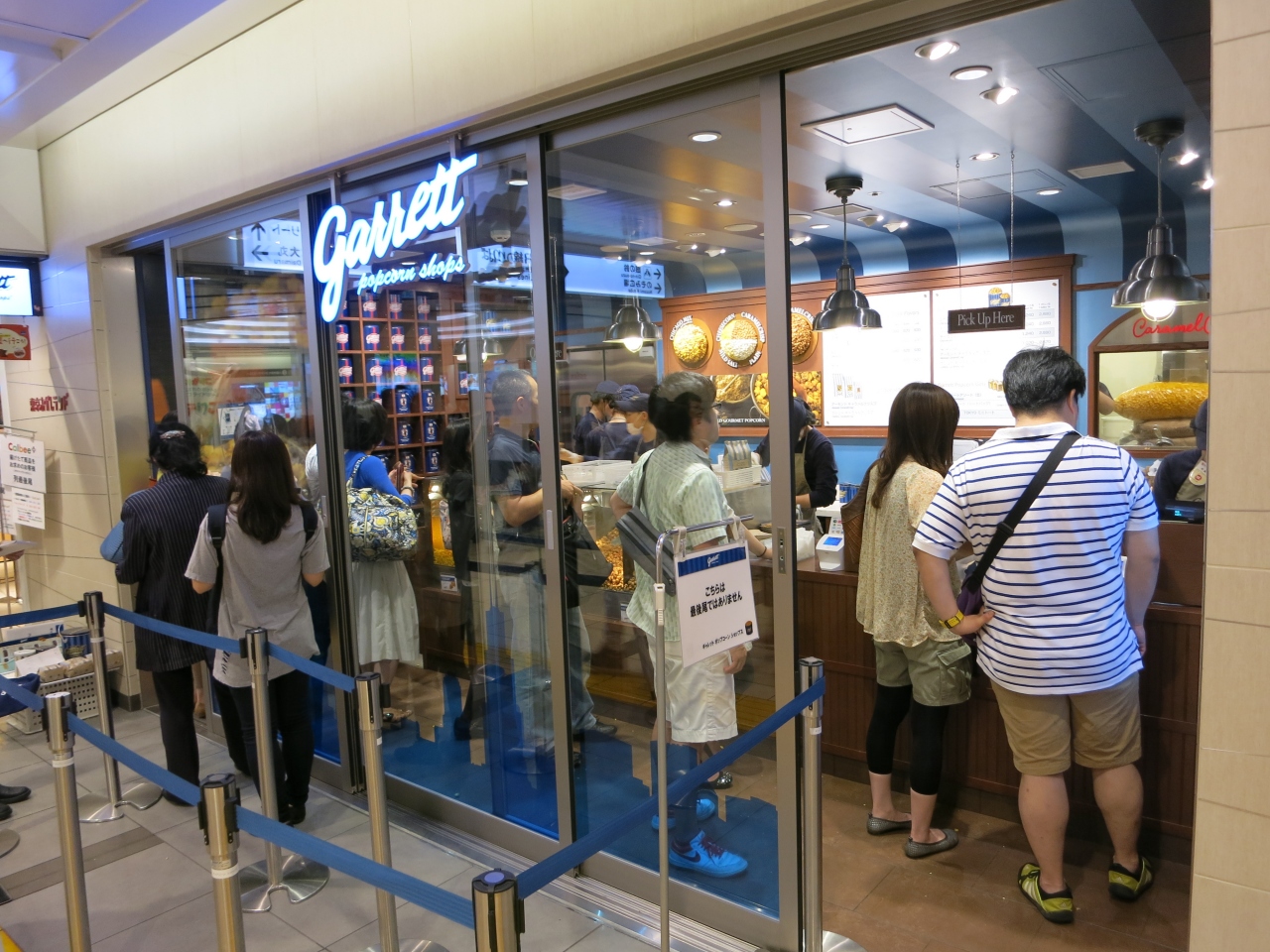 東京駅 八重洲口地下の一番街にあるシカゴ生まれの人気ポップコーン店です。土曜日の17時前に行きましたが、「あれっ!」っと思うほど、空いてました。写真の通り店の前にはたった二人しかいませんでした。人気がなくなったのか、それともたまたまなのか?