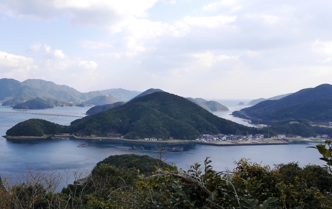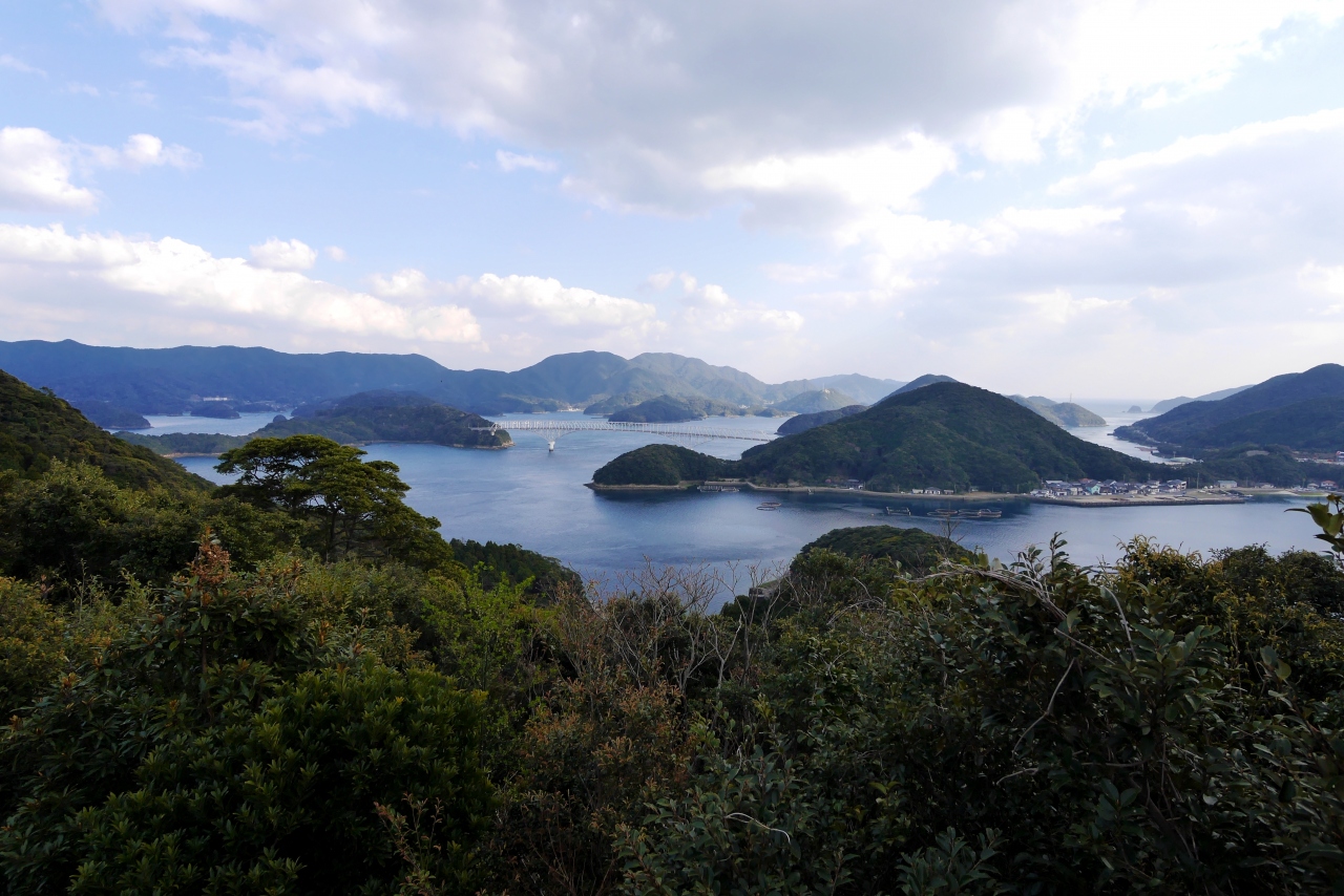 山道を行くが,若松瀬戸の素晴らしい風景が見える