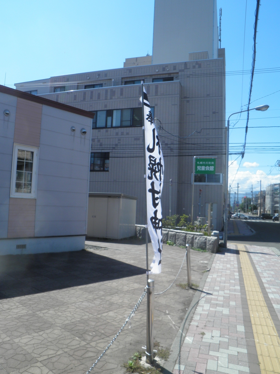 札幌北部の苗穂地区を散策していると、街角の何か所かに札幌村神社の白いのぼりがたっていました。神社のホームページをみると、例祭日が9月5日とあるので行事があるのかもしません。そういえば、苗穂神社と同じ日に例祭日なのですね。