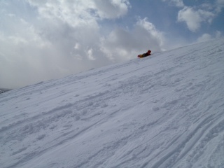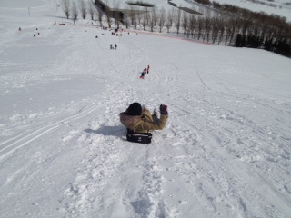 モエレ山のてっぺんから滑り降りるとかなりの迫力がありますが、ソリを持って自力で上がらないといけないので結構ハードです。子どもたちは中腹くらいから滑っていました。