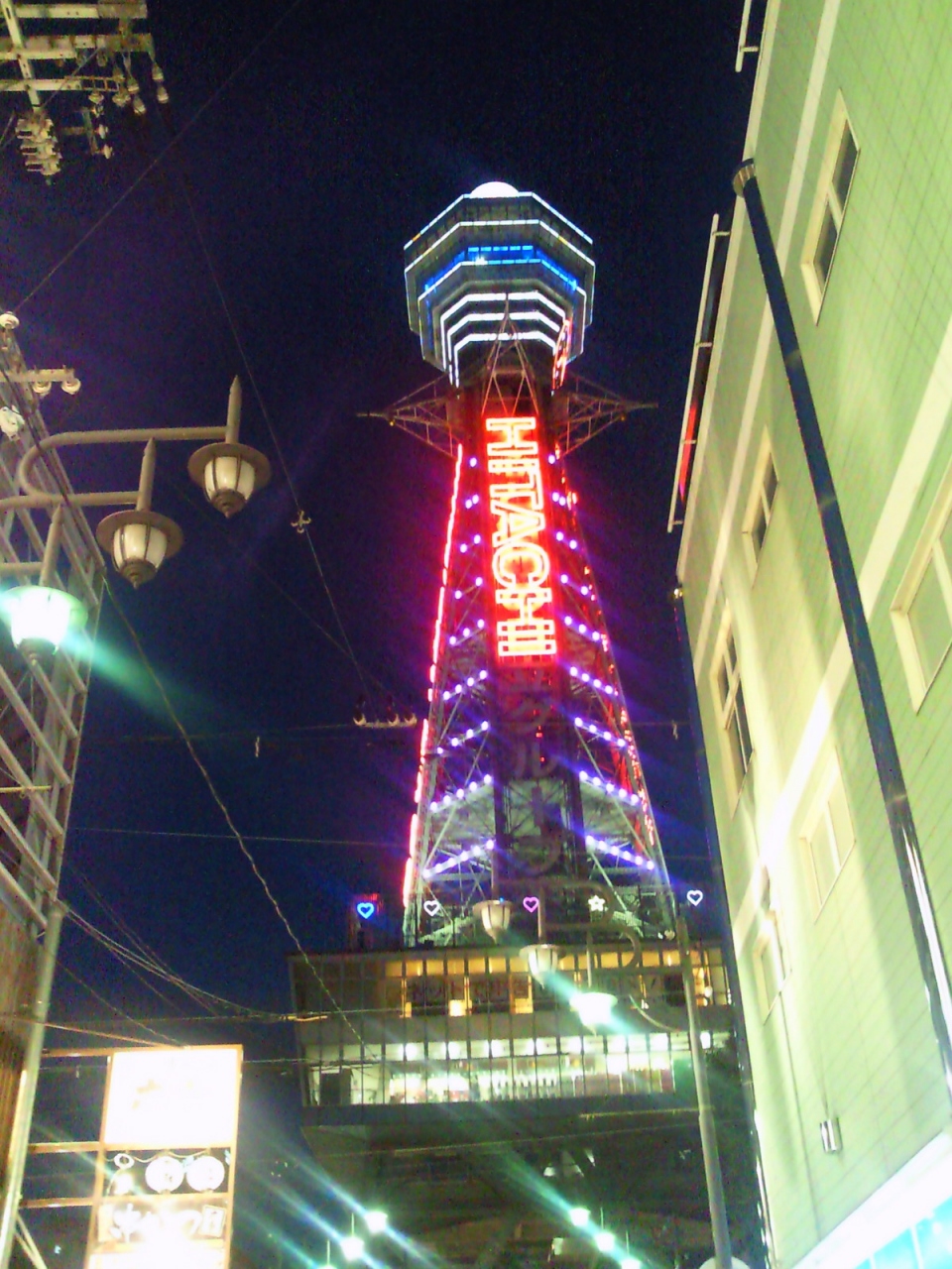 高い塔やビルが次々と建築される昨今、100メートルほどの通天閣は高さでは埋没してしまう存在かもしれません。しかし、新世界地帯に立つこの塔の展望台からは、かなり遠くの名所まで見渡せるのです。なんとなく実際の高さ以上の景観を体感しました。