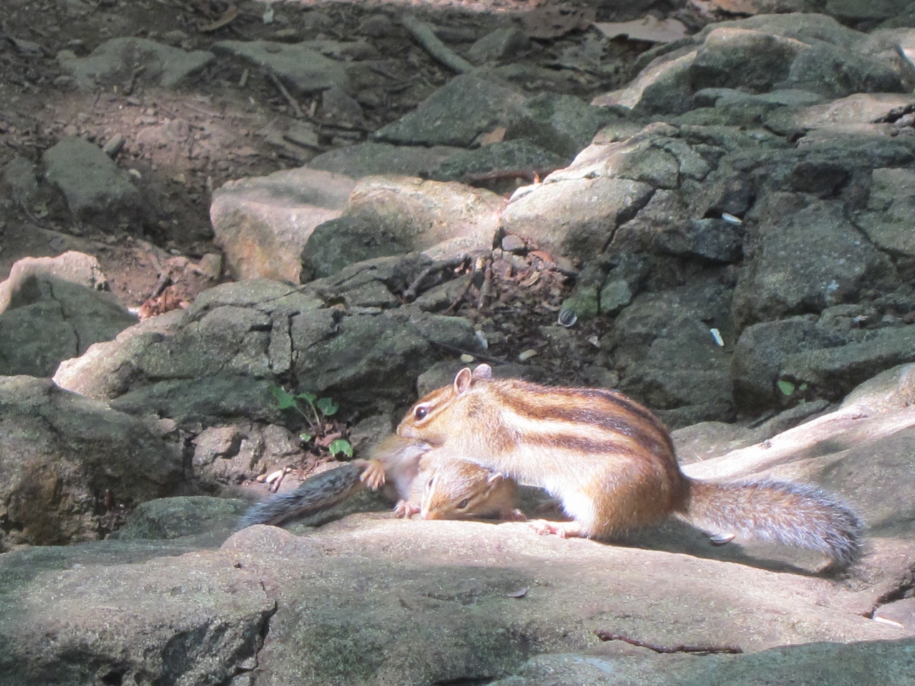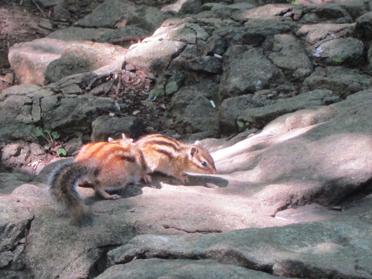 寄ってきたのは、シマリスでしたが、登っていく途中ではしっぽの大きいエゾリスもチョロチョロしていました。小鳥も近くまで寄ってきて、エサをついばんでいました。なお、麓の円山公園でもリスを見かけましたが、ここまでは寄ってきてくれませんでした。