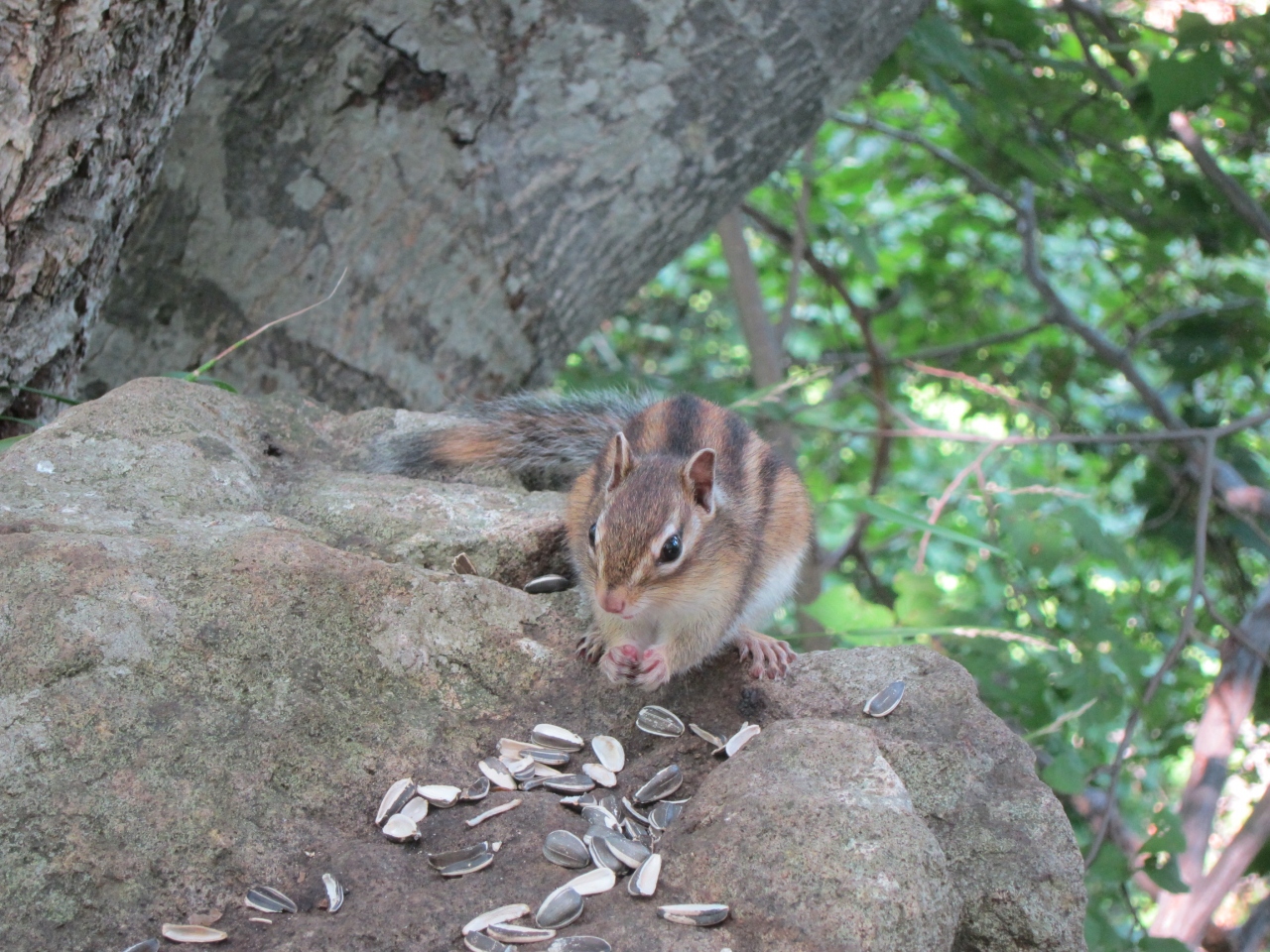 リスや小鳥が間近まで寄ってくる(ひまわりの種があると良い)