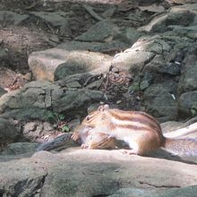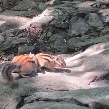 山頂まで登りましたが、途中の尾根付近(八十八ヶ所コース)でリスが間近まで寄ってきました。よく慣れています。休日だったので、小さな子供を連れた家族連れが多く、ひまわりの種を持ってきている人が目立ちました。種をやると、ほんの指先まで来て食べていました。ちなみに、小樽の天狗山のロープウェイ駅を降りたところすぐにあるシマリス園のリスは、更に慣れていて、手や背中にまで乗ってエサをねだります。