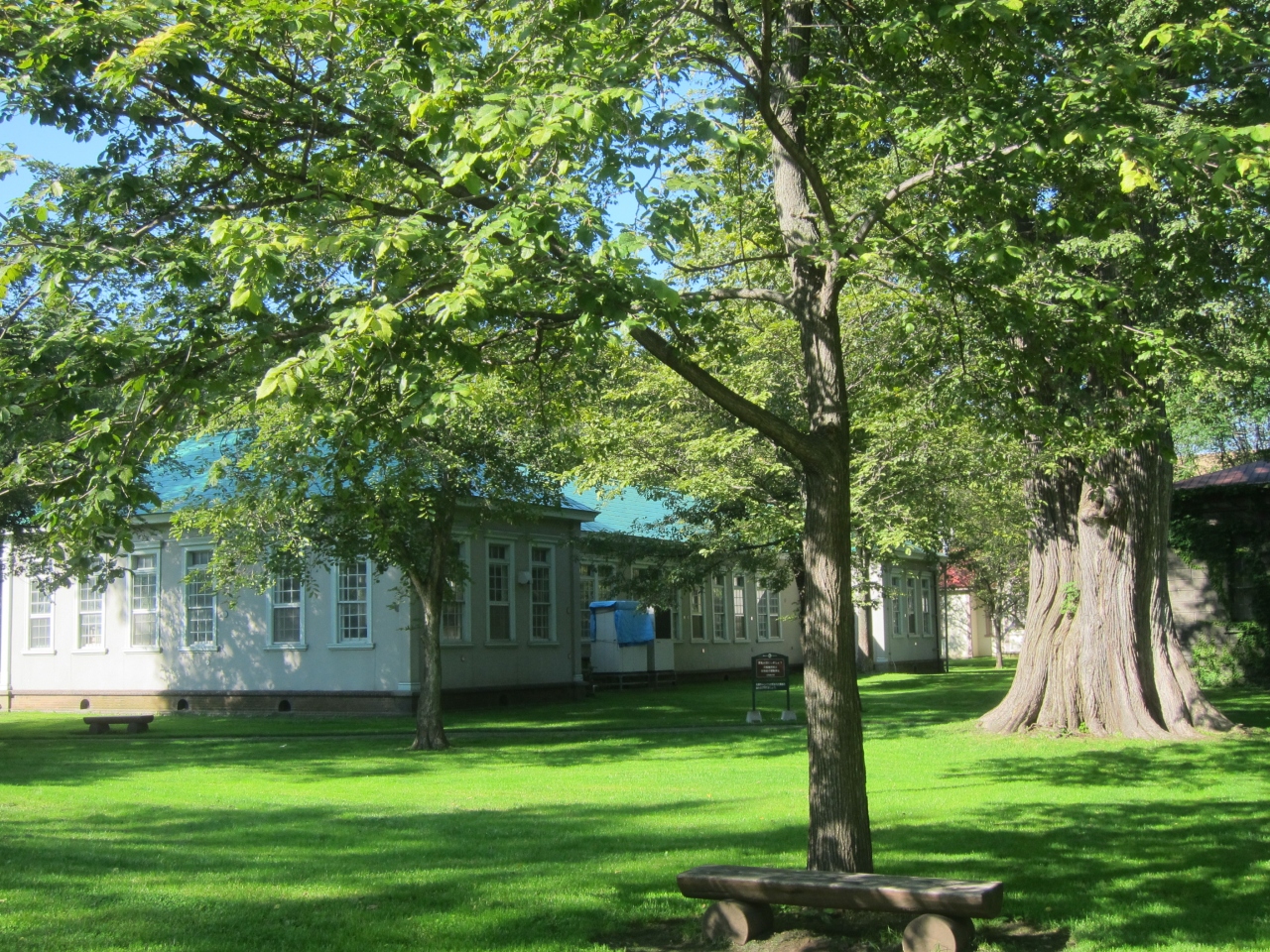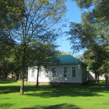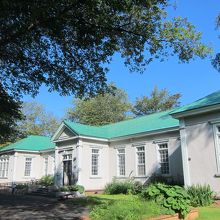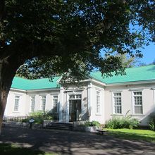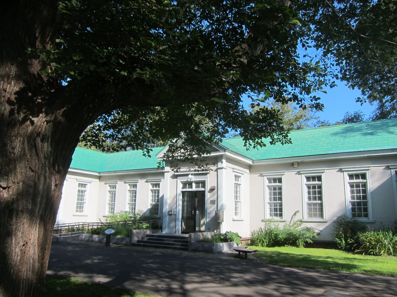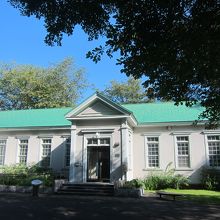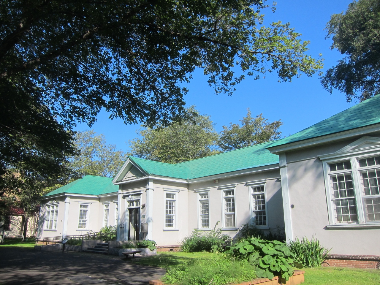 旧教室は、疎林の合間に佇む白塗壁に緑屋根の爽やかな感じの建物です。清々しい空気に包まれて朝日に光る建物がとても良かったです。クラーク像まで来たついでに、古河記念講堂と合せて、見て雰囲気を味わうだけでもよいのではないでしょうか。