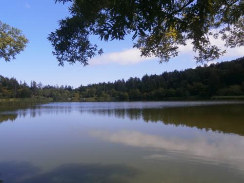 フェリーターミナルから、レンタサイクルで30分ほどでしたが、最後の2キロは急な坂で、ヒーヒー言いながら、姫沼入り口に到着しました。