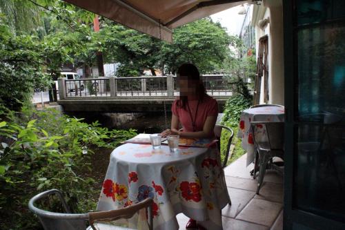 - 店内は狭いので窮屈に感じるが、気候の良い頃テラスで頂くと高瀬川のほとりで雰囲気は良好