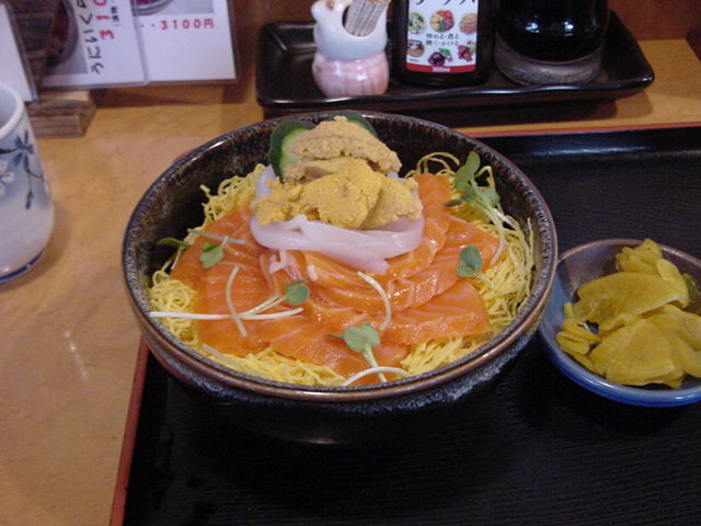 小樽運河から南小樽駅にかけてのにぎやかな市街地にある食事処。観光客も多いところなので、海鮮丼やウニ丼もありますが、手軽な定食もあって、地元の人たちが昼食に訪れていました。カウンターがあるので一人でも安心。海鮮丼は安い割には大満足。サーモンの甘さと脂のノリがすごくよかったです。