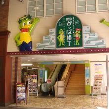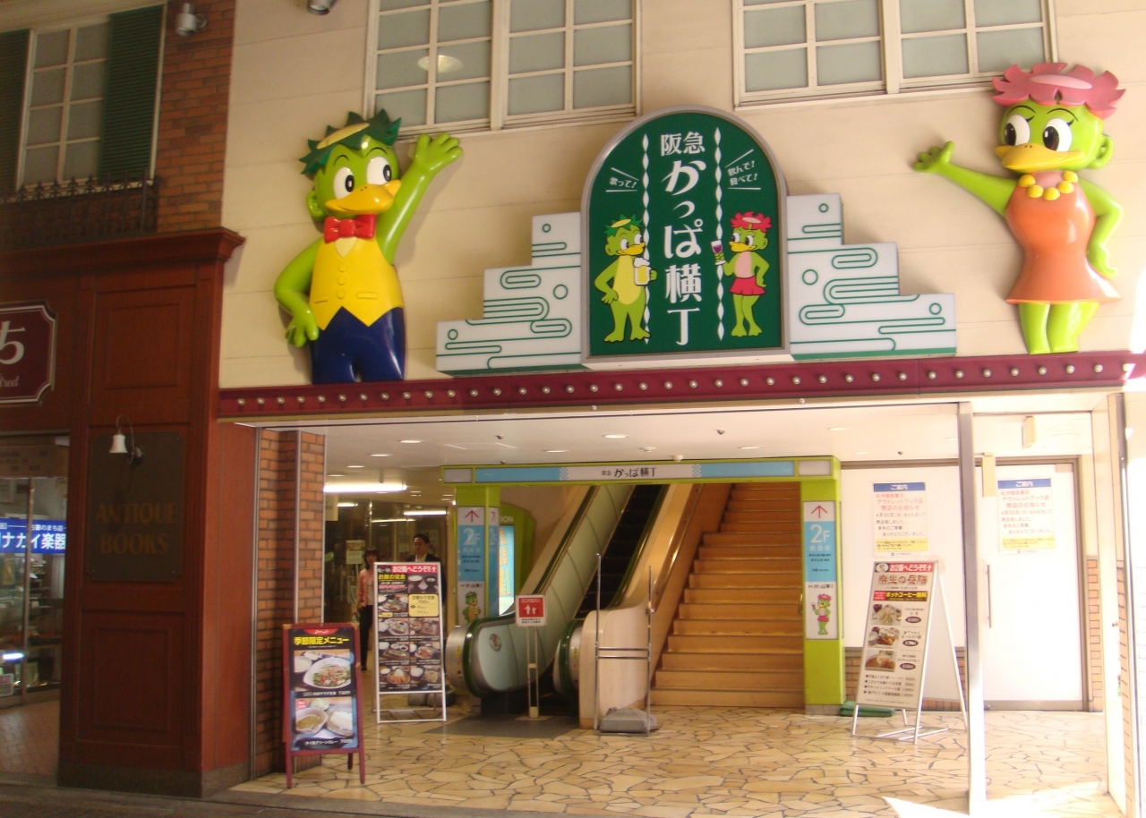 入口には可愛いかっぱのオブジェ、狭い通路の左右に13軒の古書店が並んでいます。