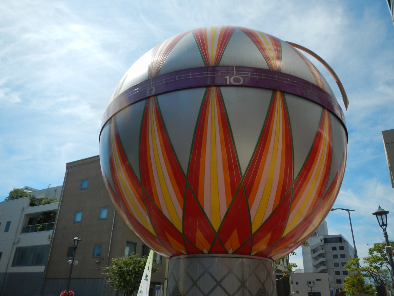 この球体の物体は何だろうと見ていると、近くにからくり時計の演奏時刻の表示がありました。