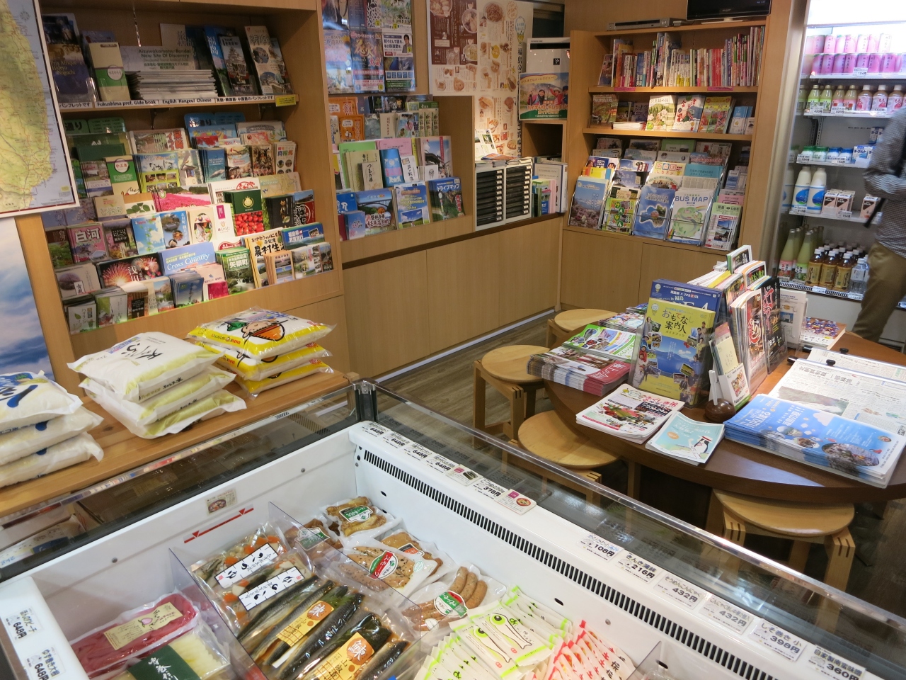 東京駅 八重洲口前の八重洲ブックセンターの横に福島県のアンテナショップ 福島県八重洲観光交流館があります。店内は他のショップと比較してそんなに広くはありません。観光パンフレット等が多く置かれ、福島銘菓のままどおる等を買うことができます。