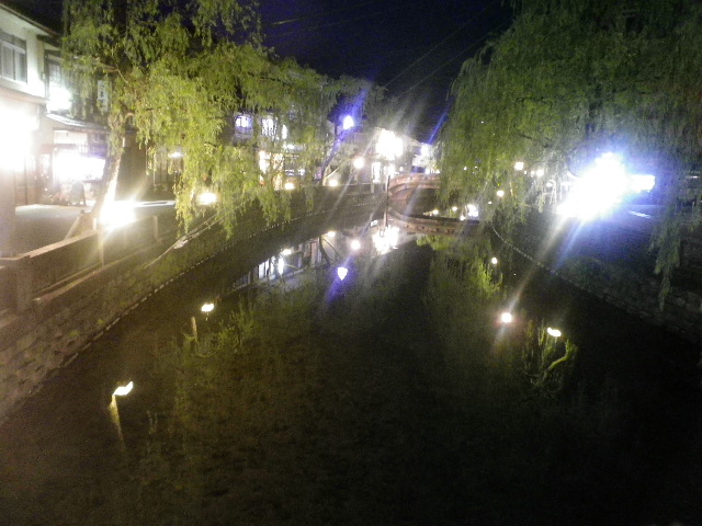 浴衣に下駄を履いて歩くことがもっとも似合う街ではないでしょうか。川沿いの柳の木が良い雰囲気を出しています。川にかかる橋には小さなベンチがしつらえられており、湯上りの火照った体を冷やすのに最適です。