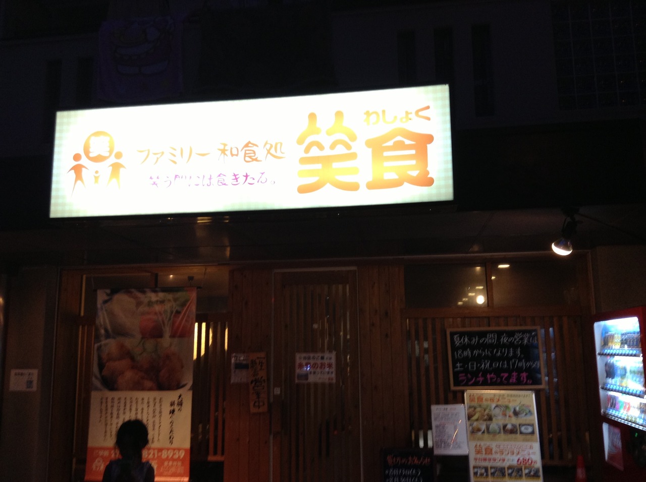 笑食は、原交差点から藤崎方面へ原通りを北上したドラッグコスモスの近くの居酒屋です。