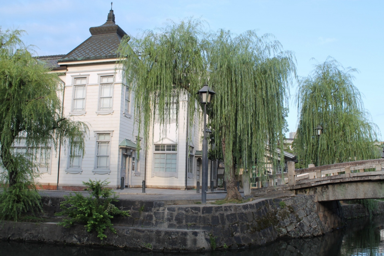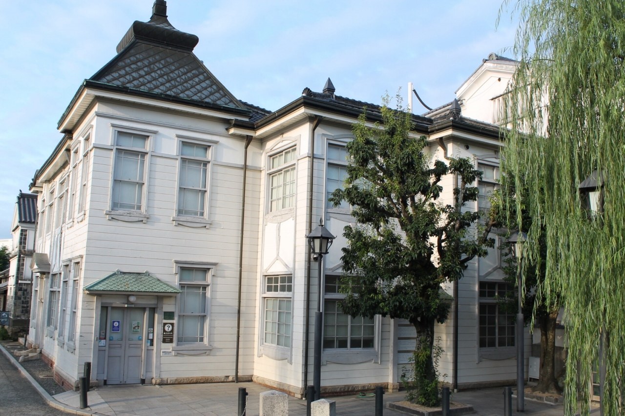倉敷美観地区の倉敷川沿いに立つ大正ロマンを色濃く残す建築物。