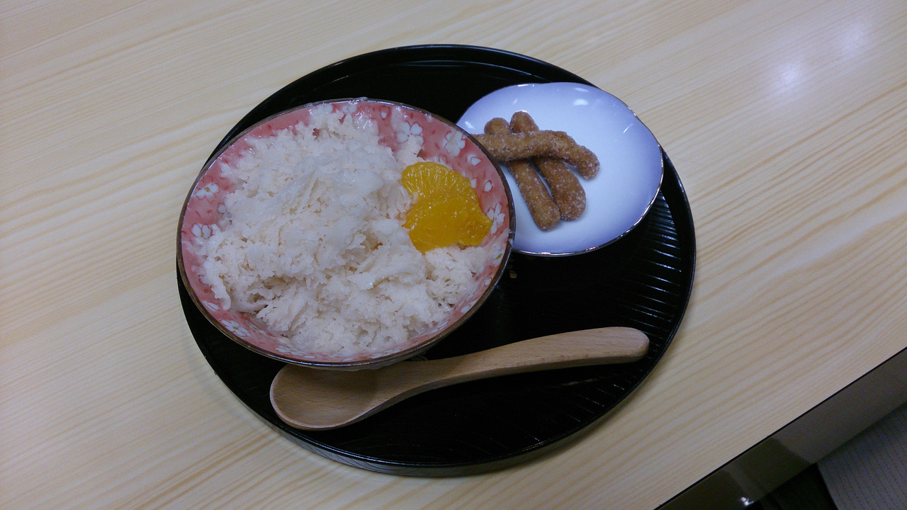 散策の途中に、花みずきというお店で、氷甘酒をいただきました。竹原の三蔵の酒粕から作られ、別々のを頼んで食べ比べも楽しいです。パウダースノーのような口どけで、とても美味しかったです。おすすめです。