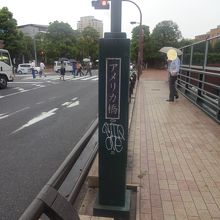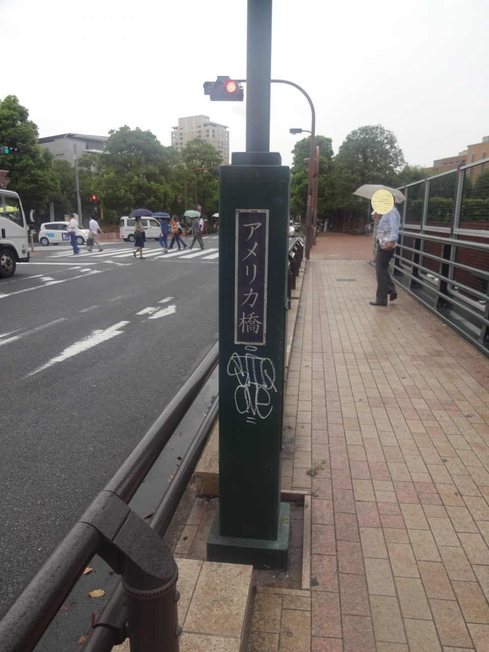 表示が表と裏では違っていて片方には「アメリカ橋」片方には「恵比寿南橋」と記されていました。