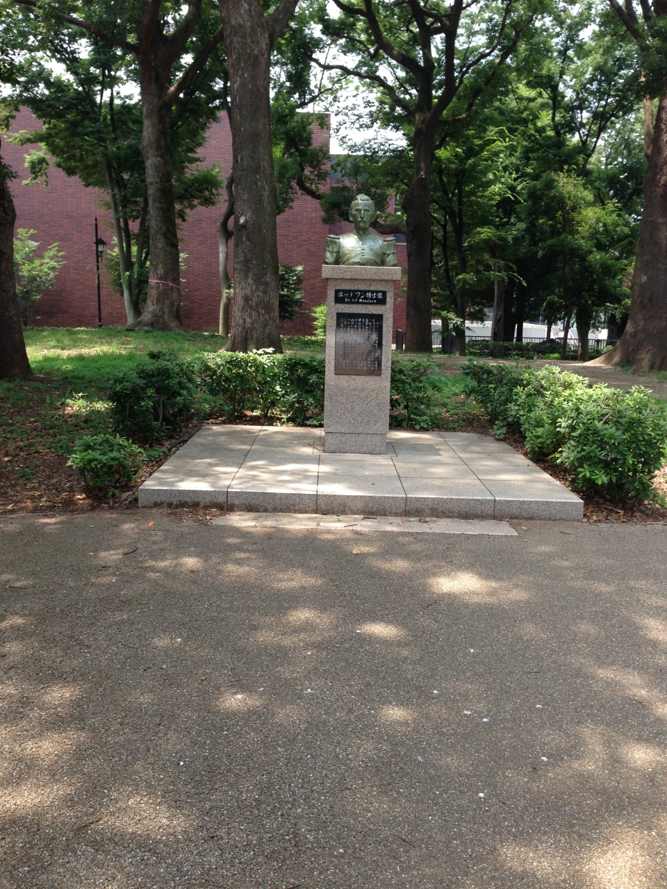 上野恩賜公園内の竹の台噴水の傍にボードワン博士像があります。上半身だけの小さな銅像になります。ボードワン博士は江戸時代に来日したオランダの医学博士で、当時この地に大学病院を造る計画があったが、博士が公園にすべきと提言をしたので上野恩賜公園ができたという経緯があるらしいです。