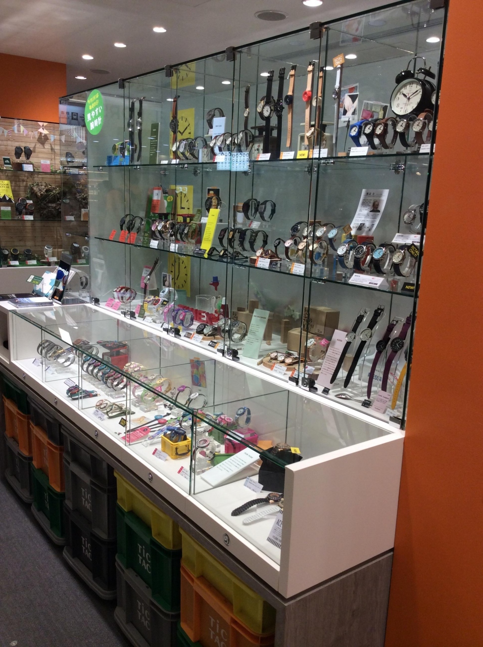 今年の7月8日に成田空港第一ターミナルに新しくオープンしたショッピングエリアにある時計屋さんです。特別高価なブランドものはありませんが、オシャレなデザインなものも多く、敬老の日も近いためか、老眼でも見やすいものもありました。