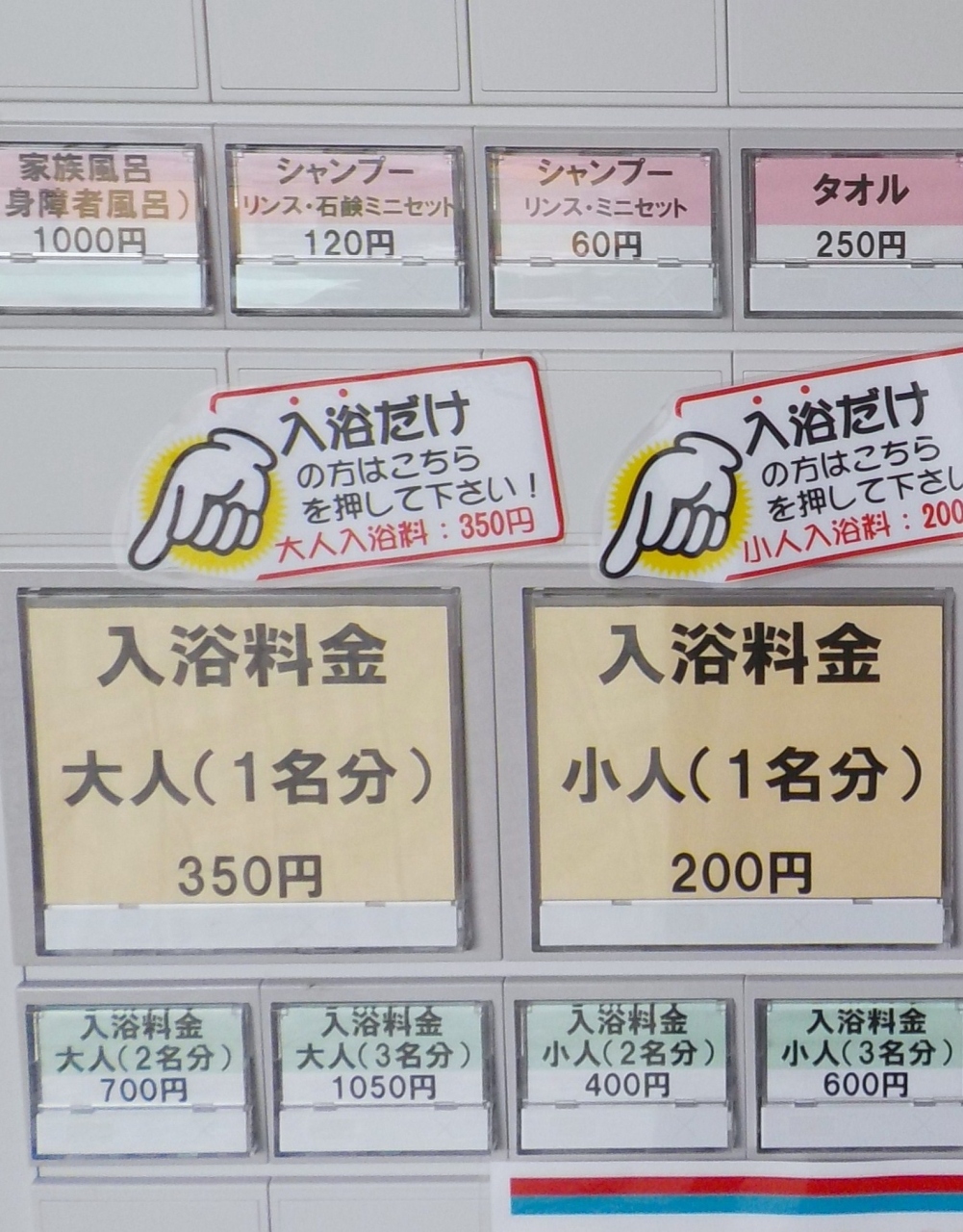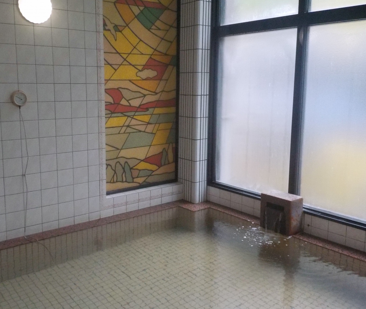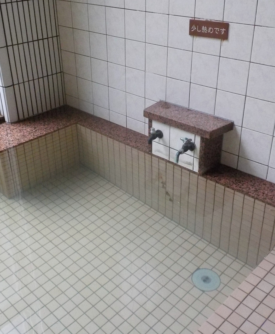 普通の温度と熱めの温度の二つの浴槽だけですが、加水掛け流しで湯船からなみなみと湯が溢れています。