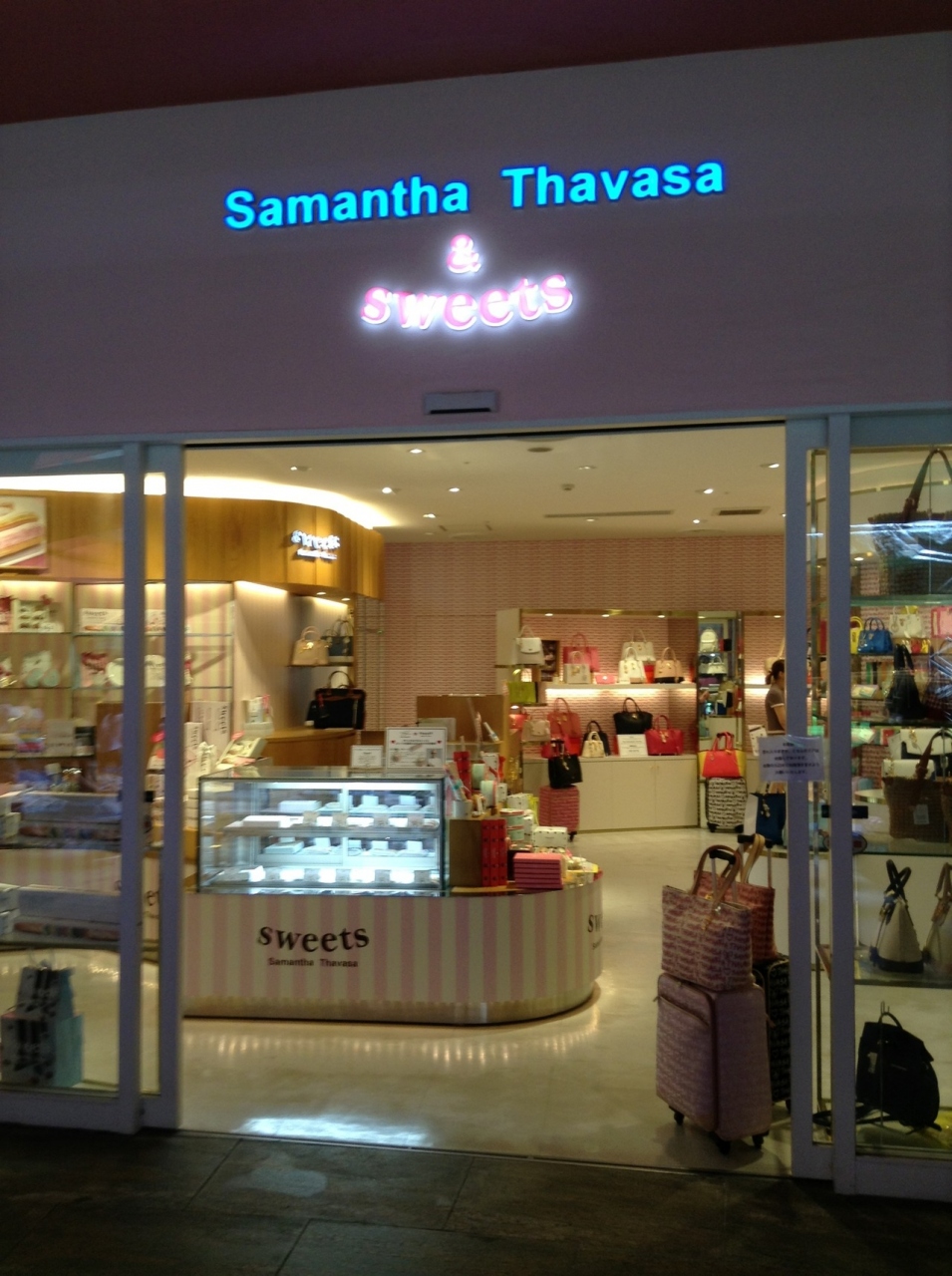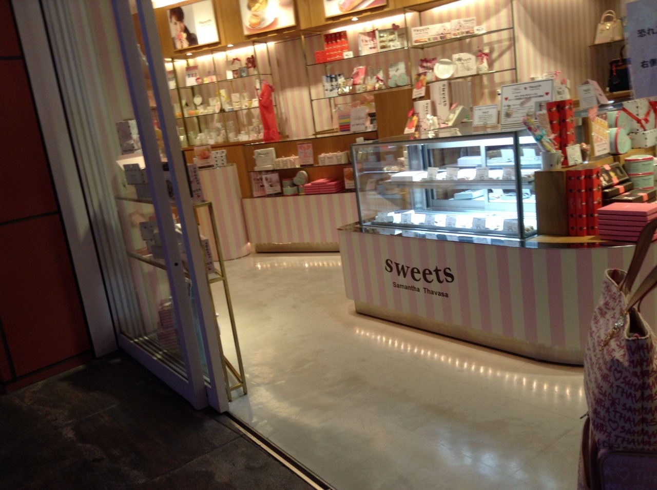 一時期ほどではないですが、華やかな印象のサマンサタバサがアパレルとスイーツを販売しているお店です。