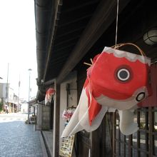 間口が狭く、奥行きの長い建物は「うなぎの寝床」と呼ばれる江戸時代の商家の造りで、軒先には伝統的な民芸品として知られている可愛らしい“金魚ちょうちん”がぶら下がっていています。