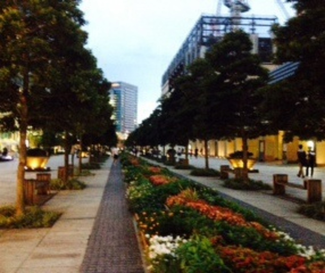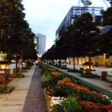 夏の昼は日差しを遮る街路樹があり、真ん中に水が流れているので、涼しく感じる。丁度夕方6時半頃になると、街灯が点灯し始めつつ、まだ少し明るくて、なんとも言いようのない気持ちのいい景観となる。ただ歩くだけでもいい空間だ。