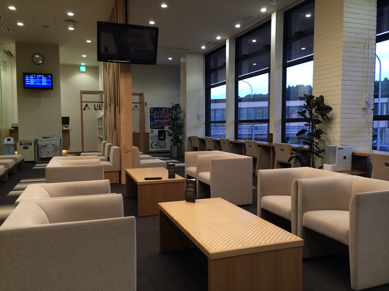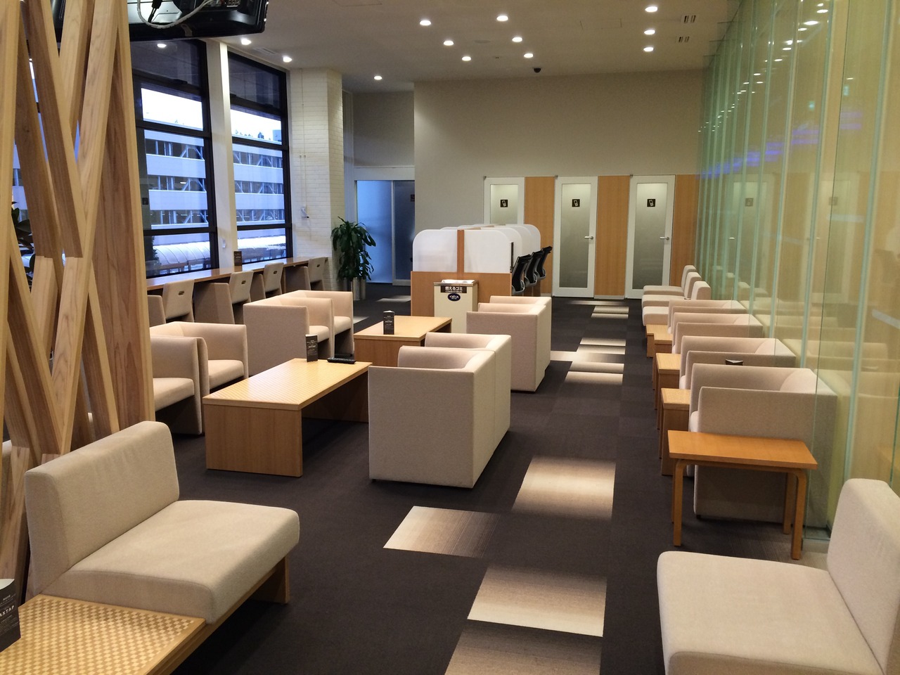 レンタカーを返却後、市内行きバスの待ち合いで利用しました。カードラウンジは到着便でも利用できるので便利です。ソファがゆったりとした空間に置いてあり、奥にはデスクトップパソコンが置いてあります。もちろん無料で利用できました。ドリンクコーナーは自動販売機形式になっていました。