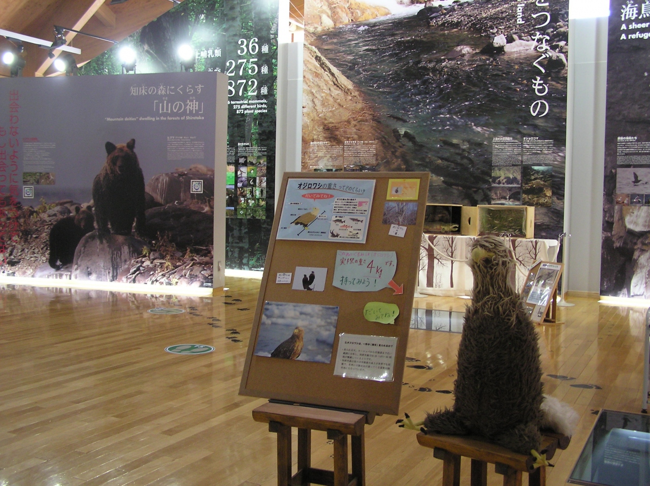 知床の海・川・森・山の生態が、展示パネルや写真・映像等で分かり易く解説・紹介されています。観光に便利なパンフレットもあり、ここを覗いて事前に知床の知識を得てから、実際に知床五湖等、知床半島の中を歩くと、より一層世界遺産としての秘境知床の素晴らしさを実感できるのではないかと思います。そして同時に、知床の素晴らしい自然をこれからもずーっと守り続けて行かなければと思います。