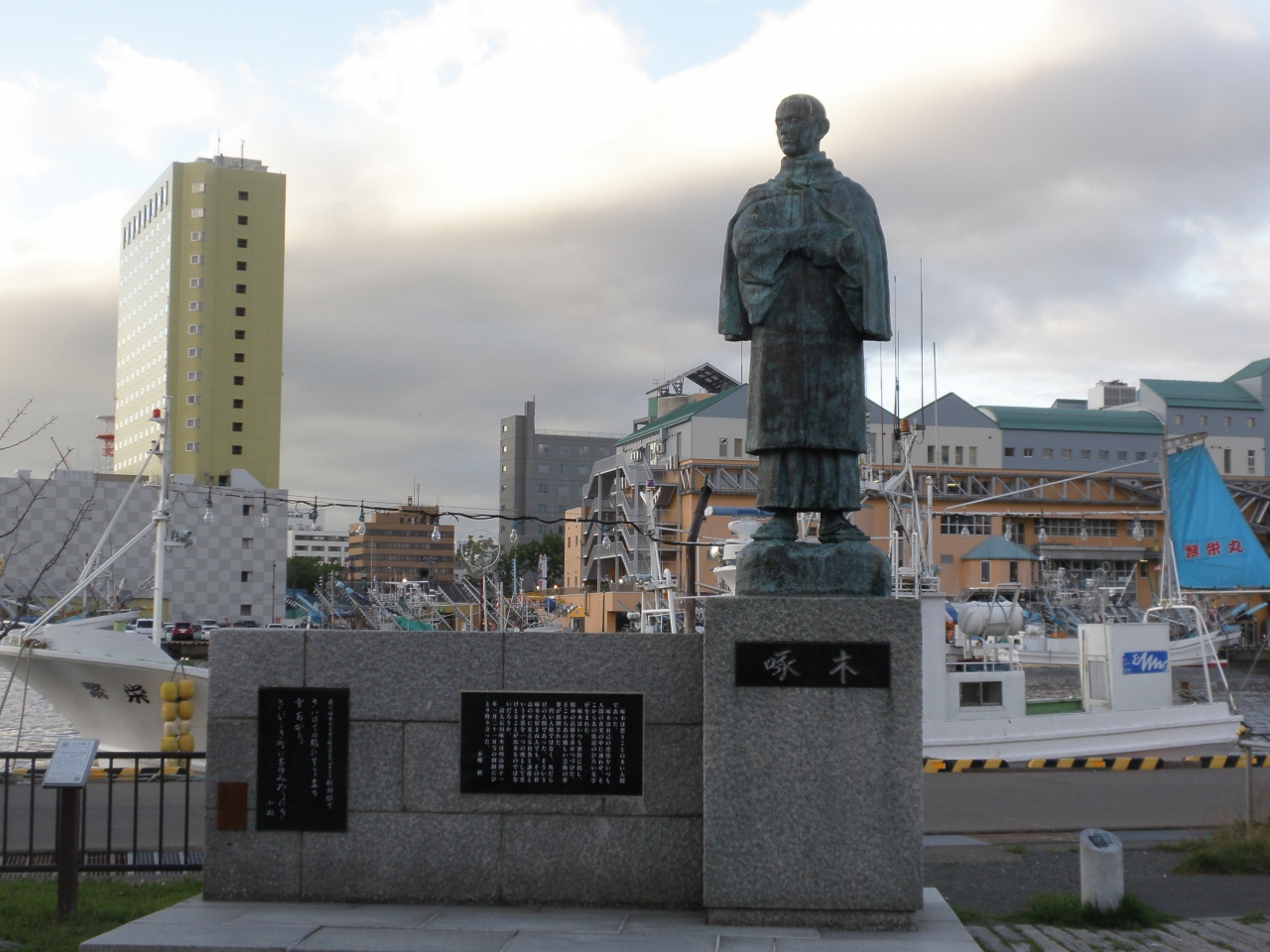 釧路市の中心部、港文館の敷地内に建造された、石川啄木の銅像です。釧路の市街にあるので、アクセスは便利、近くの埠頭に車を駐車できます。港文館は、旧釧路新聞社を再現した建物ですが、石川啄木が釧路新聞社に勤めたいたことから記念の銅像が建てられました。