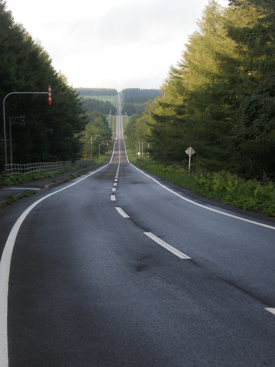 開陽台展望台を下ったところにある道路。牛乳を運搬するトラックが行き来することから命名されました。どこまでも一本道が続きます。いかにも北海道らしい光景に、感動しました。夕方だったので、ほとんど交通量もありませんでした。