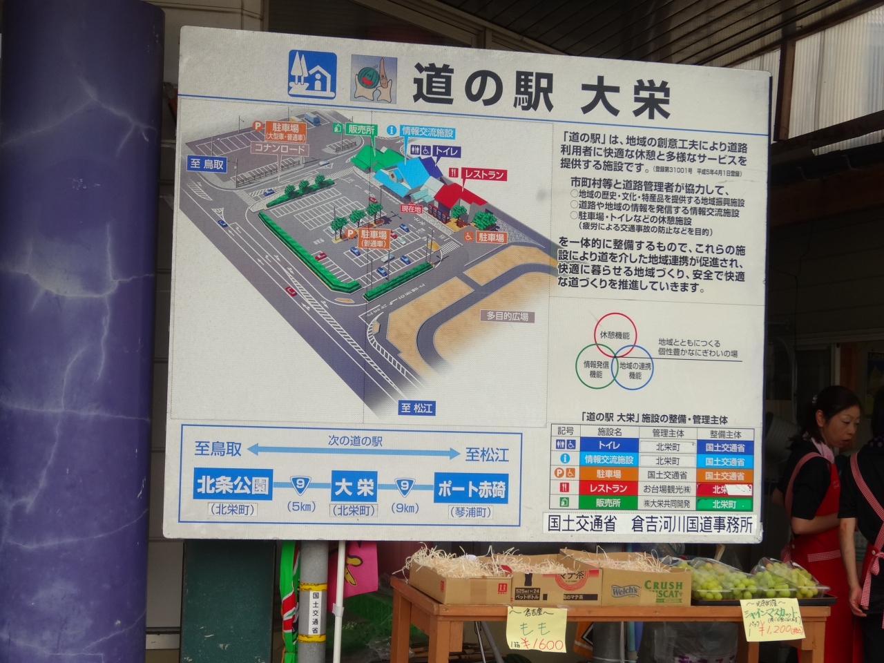 国道9号線沿いにある道の駅です。海にとても近く、景色も良いです。地元の名産である、大栄スイカや、砂丘ながいもを購入することができます。テイクアウトコーナーでは、大栄スイカのソフトクリームを食べることができます。駐車場も広く、休憩にお勧めの道の駅です。