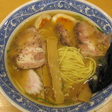 以前はこの鶏ガラ系の動物系スープと魚系の魚介スープを合わせたダブルスープが大評判で大行列でした。