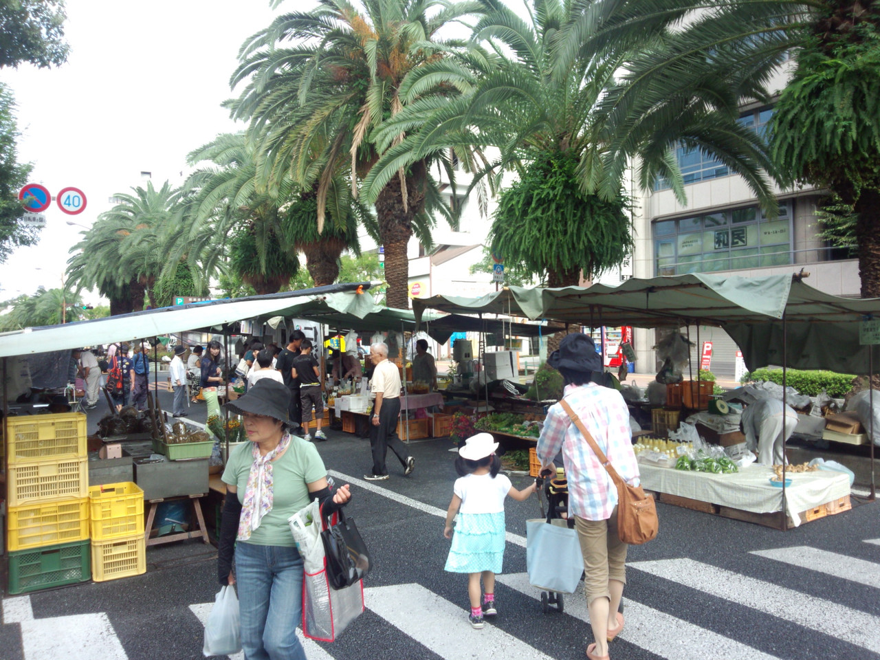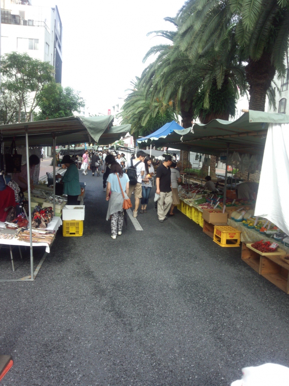 日曜日に開催される市。通りに多くのテントが張られ、威勢のよいかけ声で呼び込み客を誘います。