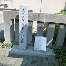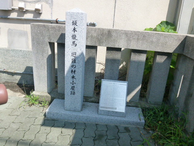 この伏見は今も昔の町家や街並などが残るところです。今もそのなごりがあり沢山の石碑が残っています。「材木小屋跡」は、寺田屋で負傷した「坂本龍馬」が難を逃れ身を隠したところとされています。材木小屋はこの石碑の東南約500mのところにあったようです。場所は大手筋をどんどん西へ、大手橋を渡り右手です。さらに先には、映画など出てくる有名な「松本酒造の酒蔵」があります。散歩コースに最適です。