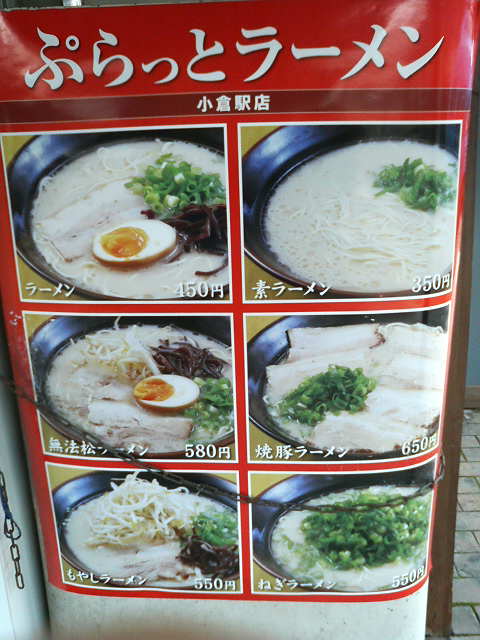 小倉駅のホーム上にある立ち食いラーメン屋です。