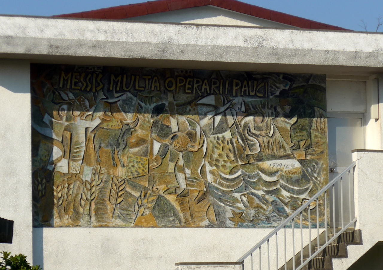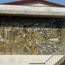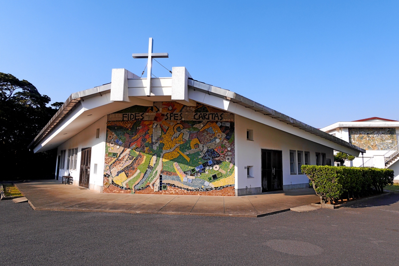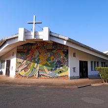 現在の教会は1971年に建造されたもので,平屋建の現代的なデザインが特徴的.1971年の建物にしては極めて斬新的だ!三井楽教会は、外壁正面の陶器で描かれた大きなモザイク聖画と、内部の現代的なステンドグラスや雰囲気が貝津教会とは対照的だった.イメージはメキシコや中南米のカトリック教会のような感じ.今回は資料館にはいかれなかった.またいくつもりだ.見学すべき教会