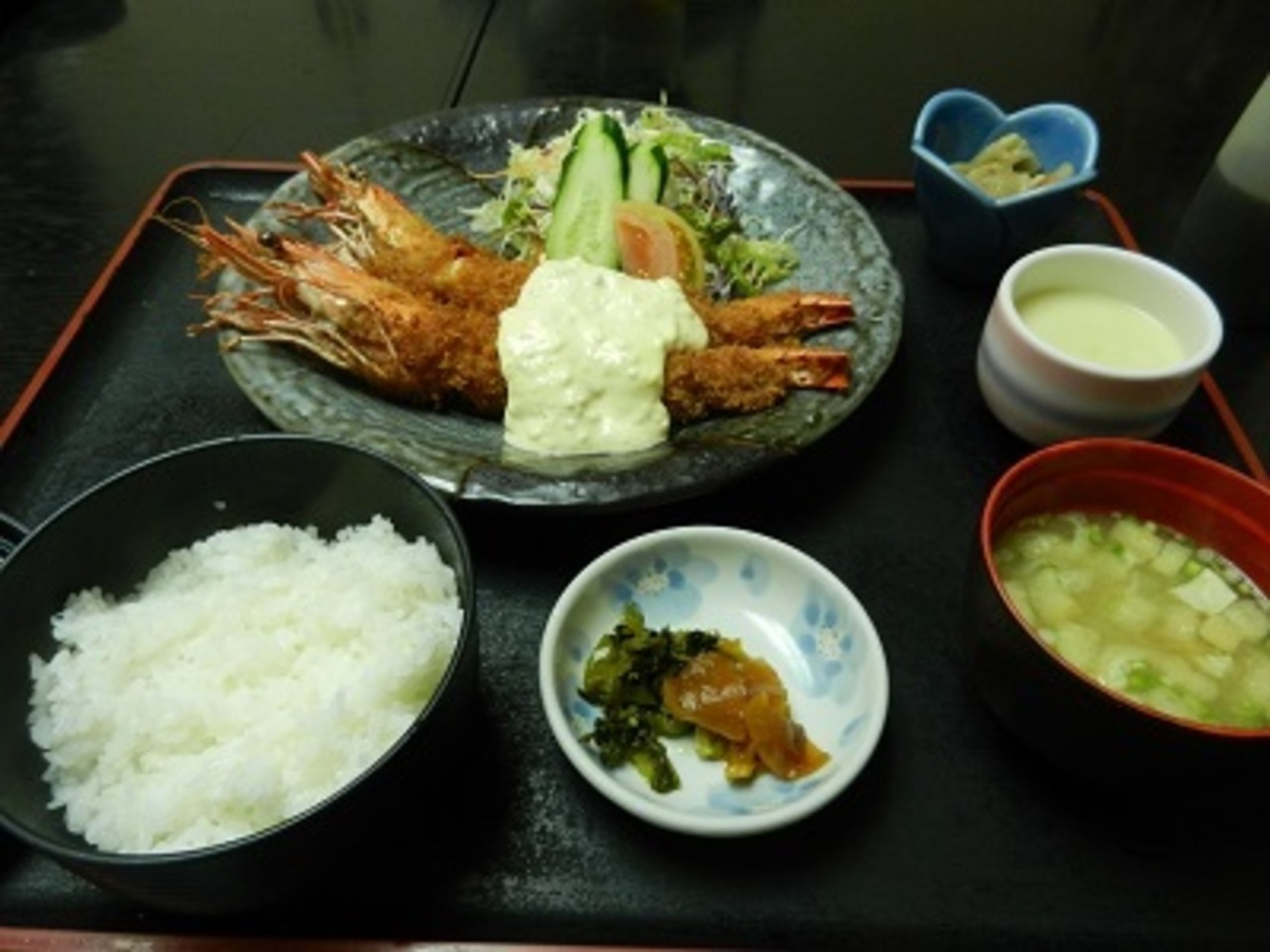 宿の人におすすめされていきました。小さな島ですが、すごい繁盛していました。エビフライ定食を注文。エビが大きくておいしかったです。定食にはサラダ、茶碗蒸し、味噌汁がつきます。値段は少し高めですが、ボリュームもありおいしかったです。