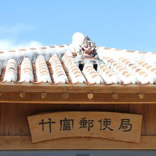 周りの民家と同じように石垣に囲まれ、赤い屋根にはちゃんとシーサーがのっていました。