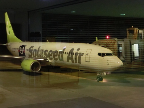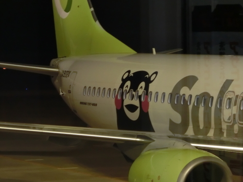 羽田空港から熊本空港へ移動する際、乗り込んだ飛行機のソラシド エアは“くまモンGO!”でした。